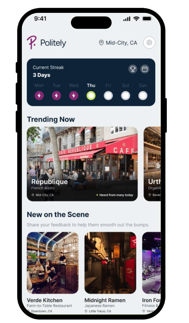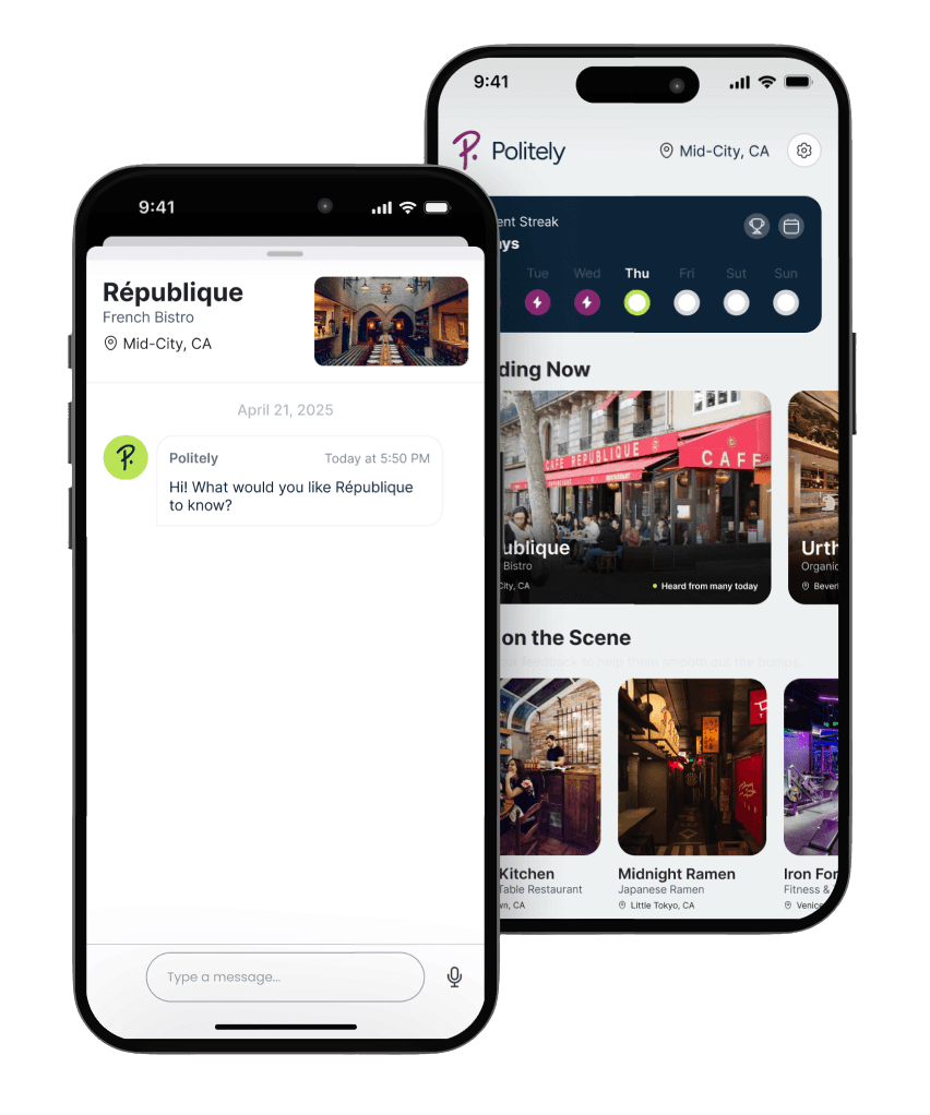 Write what you want to share with a business. Politely’s AI makes your feedback kind and actionable. Review your message and send it so your voice helps businesses improve.